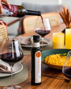 O Azeite Vertentes foi concebido com a missão de desvendar o potencial do terroir brasileiro na produção de azeites de qualidade, trazendo ao cenário gastronômico nacional um produto que expressa a riqueza de aromas e sabores dessa região singular. Seu portfólio inclui diferentes perfis — como o Suave, o Intenso e o Novas Vertentes — que variam conforme o estágio de maturação dos frutos e as condições climáticas de cada safra, proporcionando experiências sensoriais distintas.
